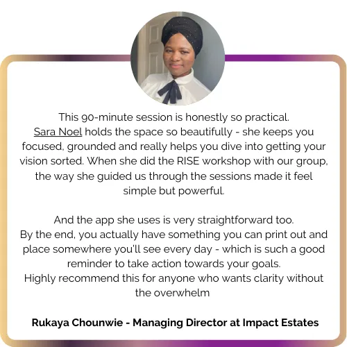 I'm Sara Noel, founder of Rise Up With Sara. I rejected the "scale fast" mentality that compromises personal values. I built my business my way - maintaining wellbeing, avoiding bottlenecks, prioritising human-to-human connection over automation.